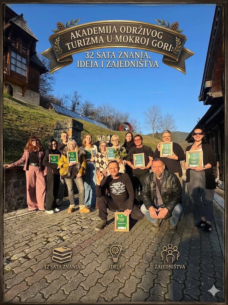 Održivi turizam • Mokra Gora • 2026 Akademija održivog turizma u Mokroj Gori: 32 sata znanja, ideja i zajedništva Tokom dva ciklusa edukacije, lokalna zajednica imala je priliku